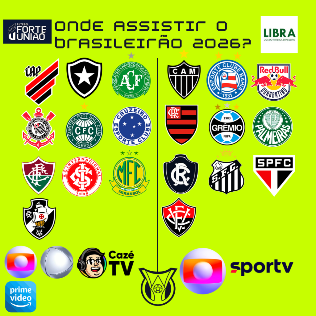 Assim como no ano passado, o Brasileirão 2026 mantém o mesmo esquema de transmissão através dos contratos firmados pela Libra (Liga do Futebol Brasileiro) e o Futebol Forte União, com base na lei do mandante (14.205/21). Esses são os dois blocos econômicos formados pelos clubes para comercialização dos direitos de televisão do Campeonato Brasileiro.